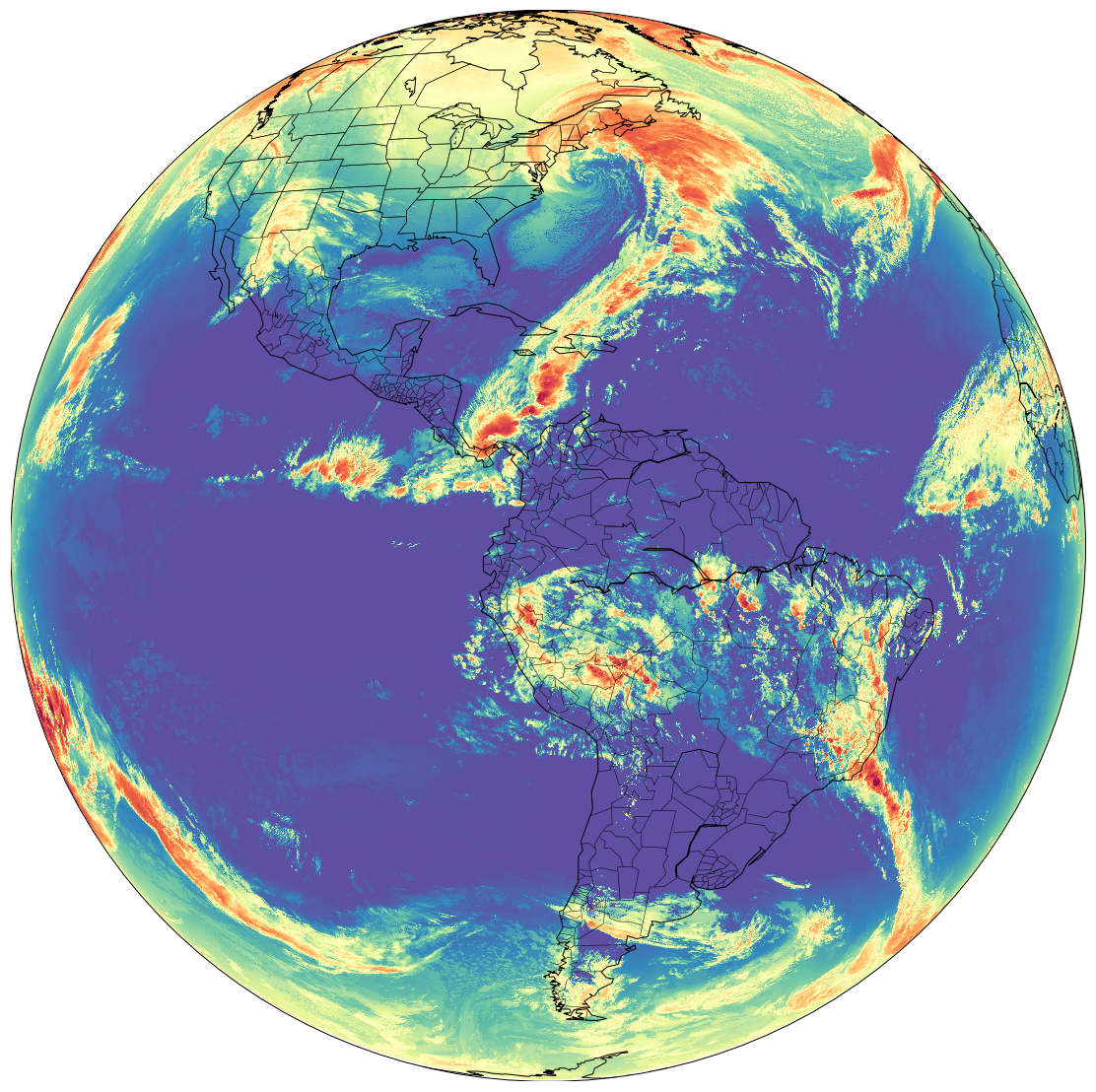 The #bombcyclone is a true meteorological spectacle -- moisture being siphoned northward from the deep tropics like a river in the sky, wrapping around a tight, eye-like center near the U.S. East Coast. #WinterStormGrayson